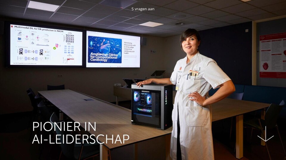 “Ik ben nu wereldwijd de eerste cardioloog die een fellowship Digitale cardiologie & AI volgt. Het opleidingsplan is nog in ontwikkeling en mag ik dus zelf mede vormgeven. We hopen dat we in 2026 ons opleidingsplan kunnen presenteren en dat er vanaf 2027 jaarlijks een of twee cardiologen in het Hartcentrum van Amsterdam UMC een traject kunnen volgen van een of twee jaar. Het zal dan nog enkele jaren duren voor we een Europese accreditatie kunnen krijgen. Samen met een aantal andere centra in Europa zijn we dan expertisecentrum voor Digitale cardiologie & AI. In Nederland is AI-cardioloog nog geen geregistreerd aandachtsgebied, maar daarover zijn we met de Nederlandse Vereniging voor Cardiologie in gesprek. Aan de ontwikkeling van het programma werken onder meer datawetenschappers en ingenieurs mee. Om alles goed te verweven binnen het grotere geheel van de opleiding, betrekken we vertegenwoordigers van alle subdisciplines. Samen proberen we een goed gebalanceerd programma te maken.”
