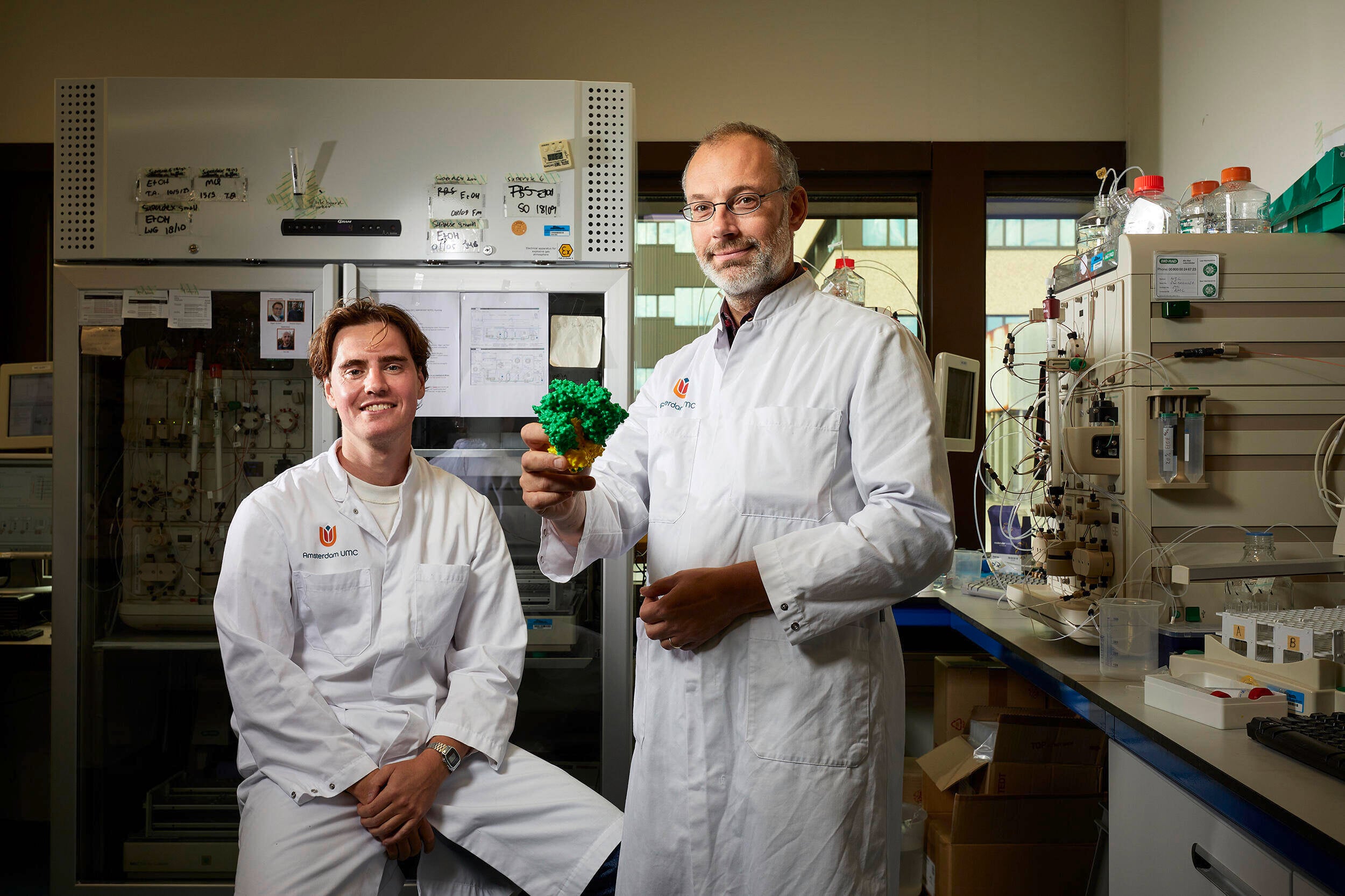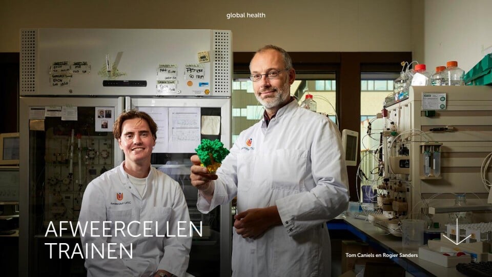 In een laboratorium in Amsterdam UMC werken hoogleraar Virologie Rogier Sanders en onderzoeker Tom Caniels aan de volgende stap in hun zoektocht naar een hiv-vaccin. Eerder lukte het al om bij mensen de juiste afweercellen te activeren. Nu gaan ze onderzoeken hoe die reactie kan worden versterkt. Het nieuwe onderzoek gaat begin 2026 in Zuid-Afrika van start.