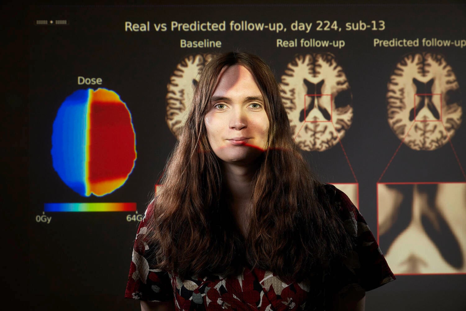 In een eerste AI-project onderzocht ze of er een versneld verouderingseffect in de hersenen plaatsvindt na radiotherapie. “Ja, dat is er”, zegt ze. “Als we ouder worden, verandert de structuur van de hersenen. Dat is met name zichtbaar in de ventrikels en hersenwindingen. Op basis van die vormverandering kan AI heel goed onze leeftijd bepalen. In de hersenen van patiënten die radiotherapie ondergaan versnelt dit proces lokaal tot wel drie keer.”