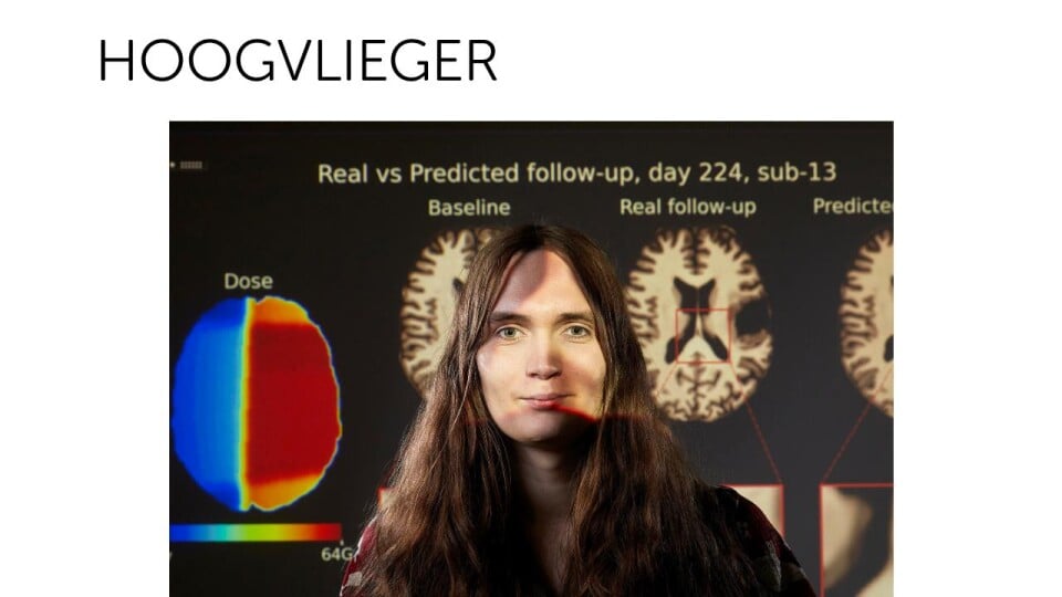 Vervolgens is ze vormveranderingen van de hersenen na bestraling of chemotherapie gaan analyseren. Huisman: “Van een patiënt met een hersentumor worden veel scans gemaakt voordat de behandeling start. Na de behandeling volgt ongeveer elke drie maanden opnieuw een hersenscan. Op basis van die hersenscans van veel patiënten, gecombineerd met het type behandeling, moet het AI-programma patronen gaan herkennen. Patronen die uiteindelijk een voorspelling kunnen doen over de vormverandering van de hersenen van individuele patiënten voordat de ingreep plaatsvindt.”